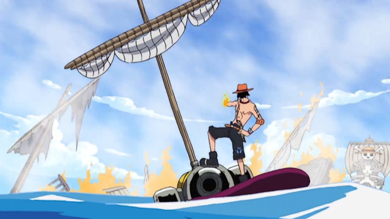 Em um dos momentos mais explosivos da temporada, Ace demonstra seu poder ao destruir sete navios da Baroque Works com facilidade. É aqui que os espectadores verão pela primeira vez a Mera Mera no Mi (Fruta da Chama) em ação, exigindo efeitos visuais impressionantes da produção da Netflix.