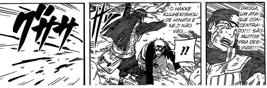 Relembrando um pouco desse momento, enquanto Naruto se concentrava novamente para entrar no Modo Sábio, Neji, Hinata e Hiashi ficaram responsáveis por proteger o nosso jovem Uzumaki e os demais ninjas no campo de batalha, que estavam sendo atacados por afiadas estacas de madeira lançadas pelo Dez-Caudas.
