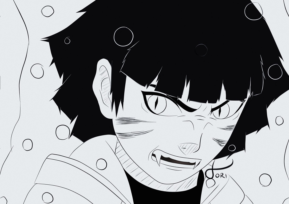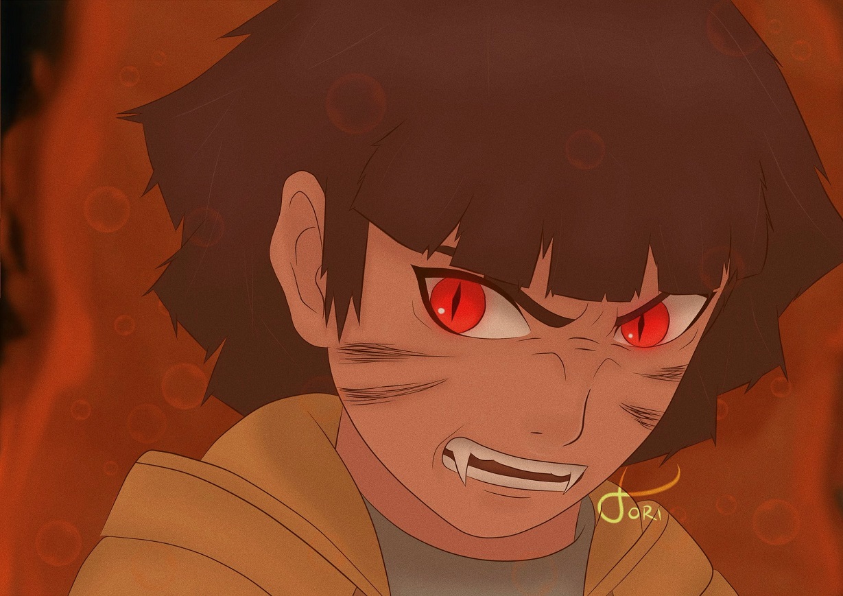 Uma das ilustrações recentes compartilhadas por Tori é a da nossa querida Himawari Uzumaki, em que ela imaginou como ficaria o visual da jovem garota coberta pelo famoso Manto do Nove-Caudas.