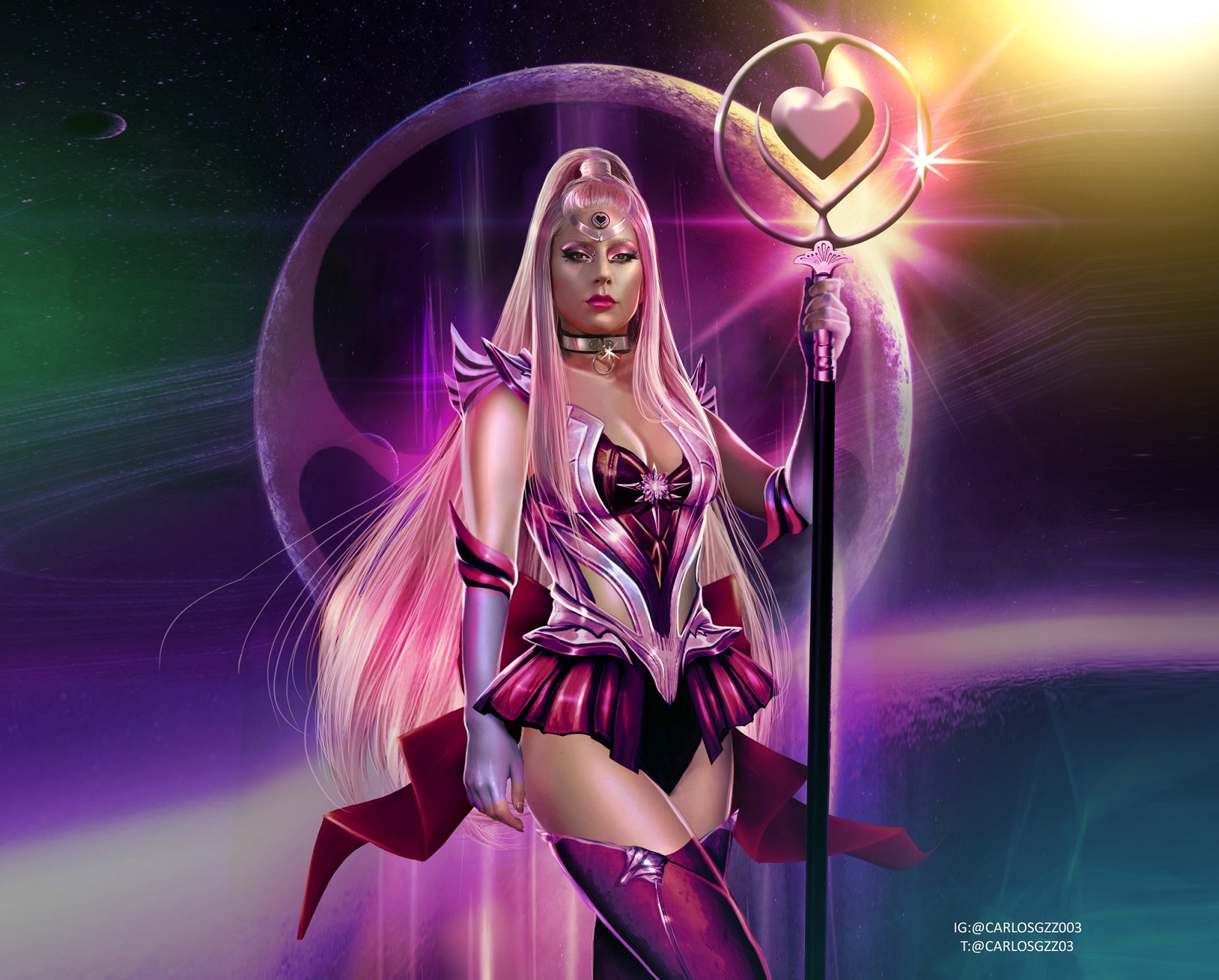 Agora, foi a vez de um artista conhecido como Carlos Gzz utilizar a temática de Sailor Moon para imaginar como seria se a cantora Lady Gaga fosse uma Sailor lutando pela Paz e Justiça.