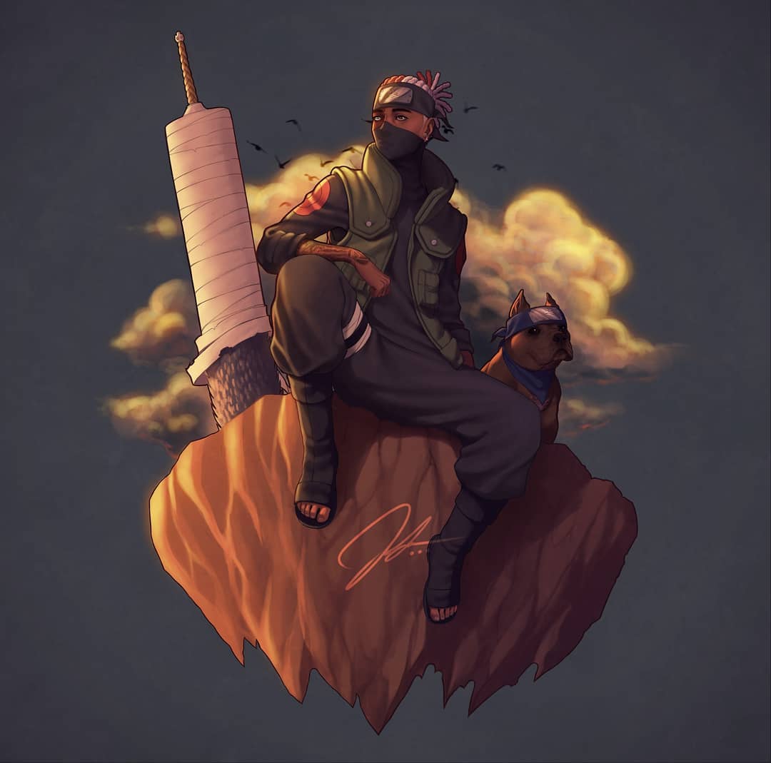 Além do seu traço insanamente bonito, o artista modificou totalmente a aparência dos ninjas, embora tenha mantido as principais características das suas vestimentas. No caso de Kakashi, por exemplo, a coloração branca do seu cabelo foi mantida só que agora com alguns dreads.
