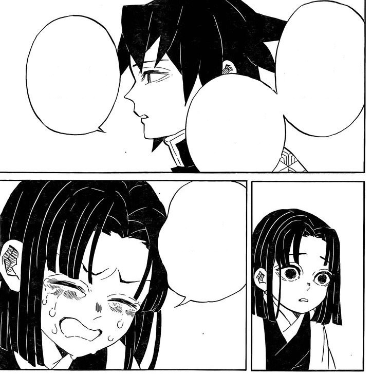Enquanto Kiriya e as suas irmãs se curvam para agradecer todo o sacrifício feito pelos dois, Giyu prontamente pede que eles levantem a cabeça, lembrando que o próprio Kiriya fez um excelente trabalho como líder da família Ubuyashiki, e que o seu pai com certeza estaria orgulhoso.