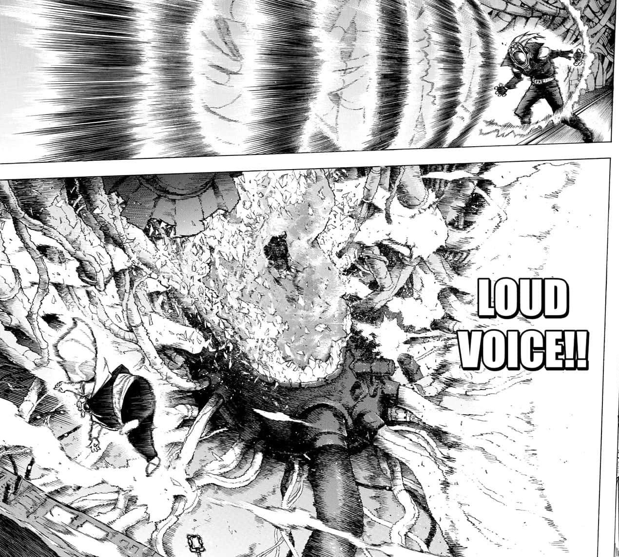 Assim, no capitulo 269 vemos a continuação do combate que está ocorrendo no laboratório do Dr. Garaki, com Eraser Head utilizando a sua habilidade para apagar as Quirks dos Nomus High-End, enquanto Present Mic conseguiu se esgueirar pela luta e destruiu boa parte do laboratório com o seu poderoso Loud Voice.