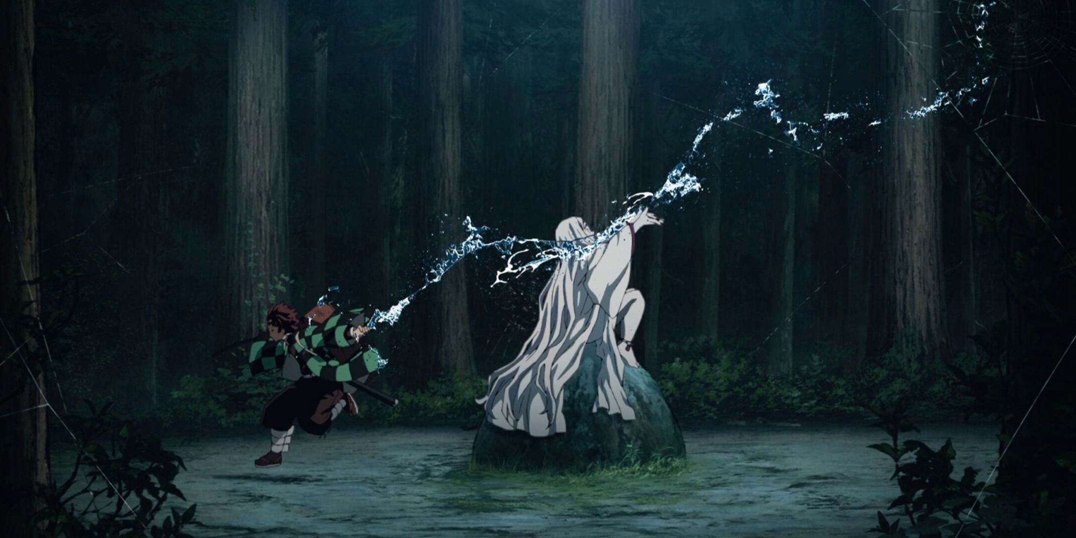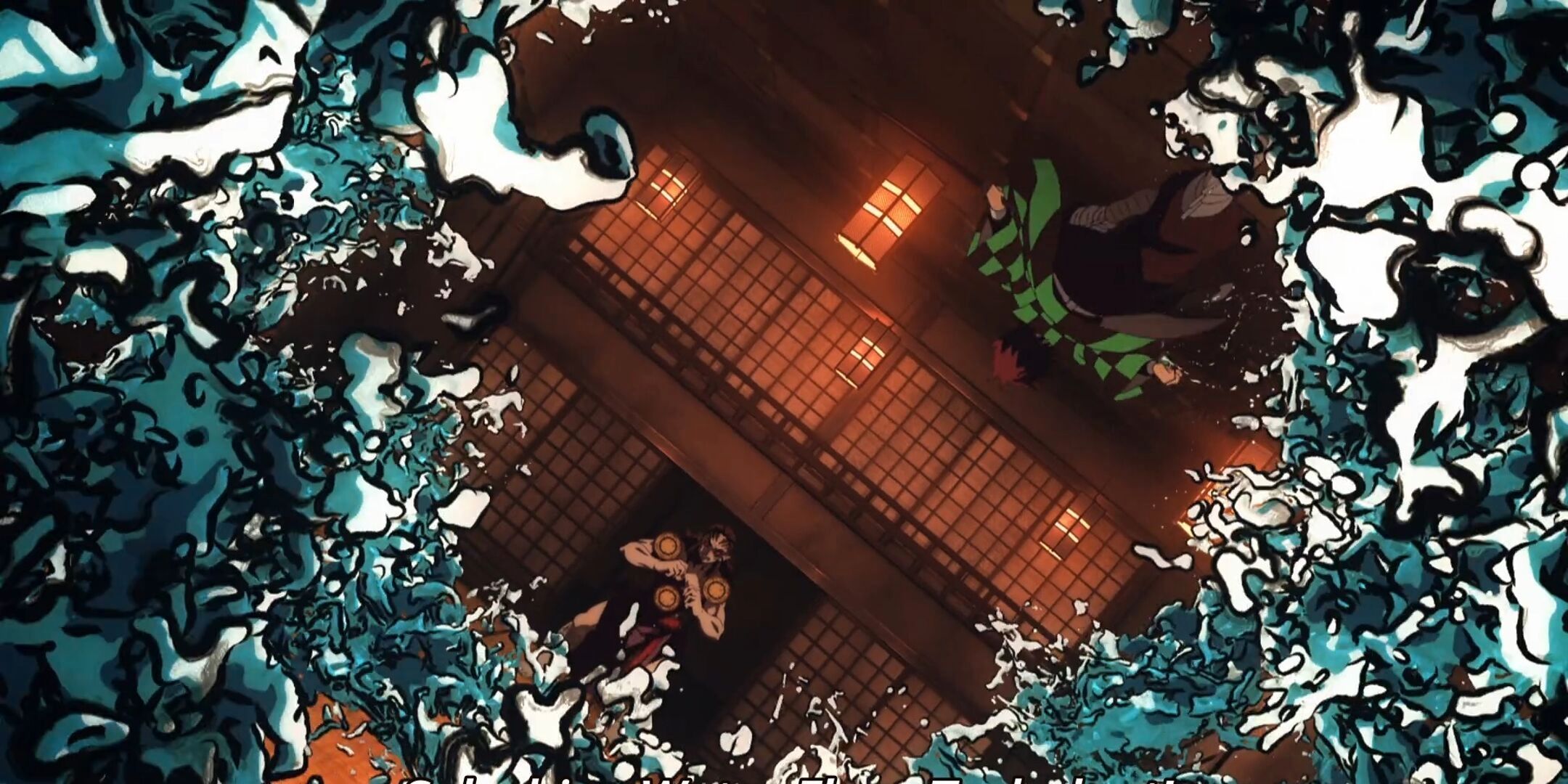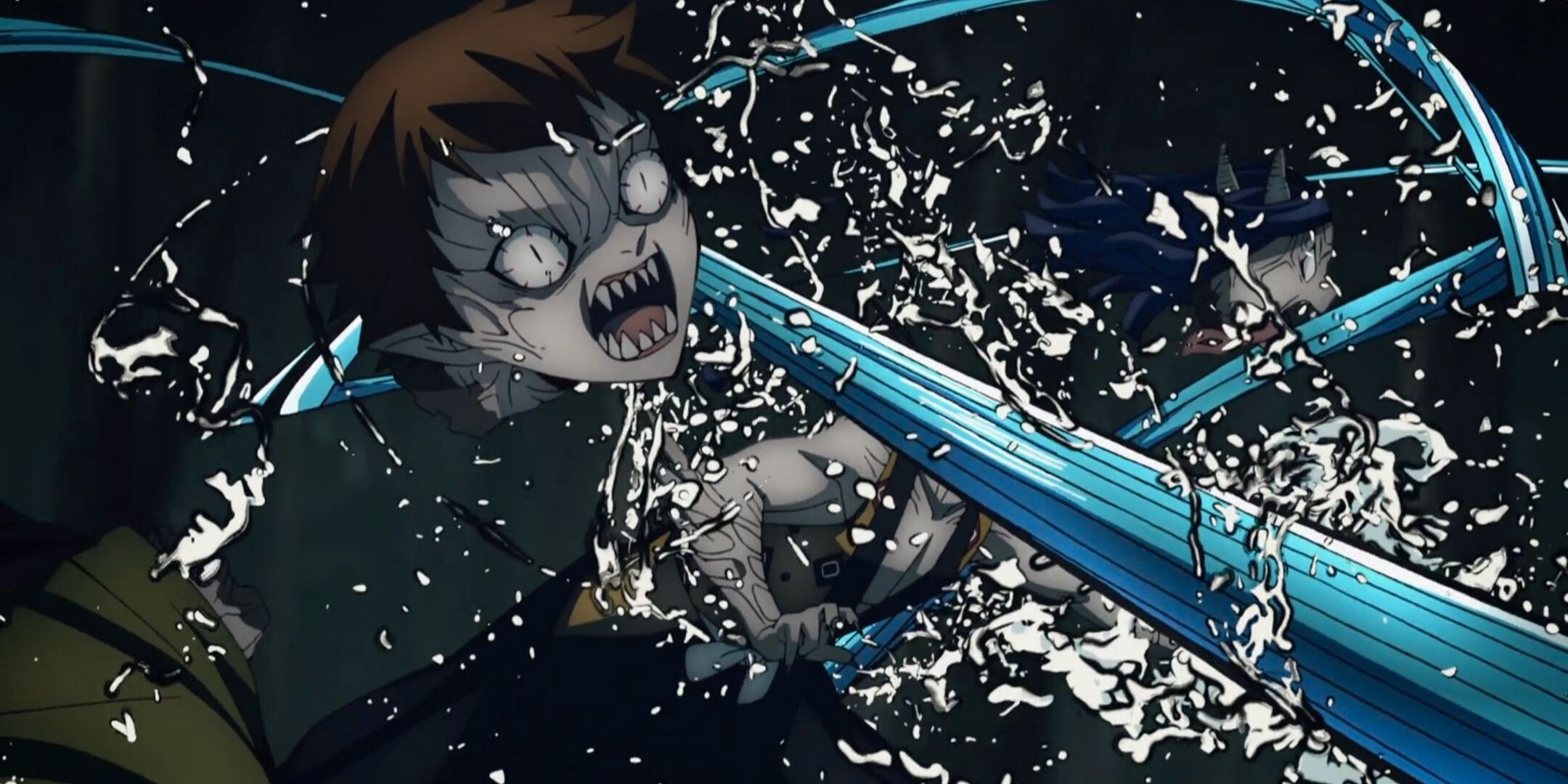 Voltando para a luta Yahaba e Susamaru, a Sétima Forma é um ataque rápido e preciso realizando através de um estocada com a espada. Essa também a mais rápida Forma da Respiração da Água.