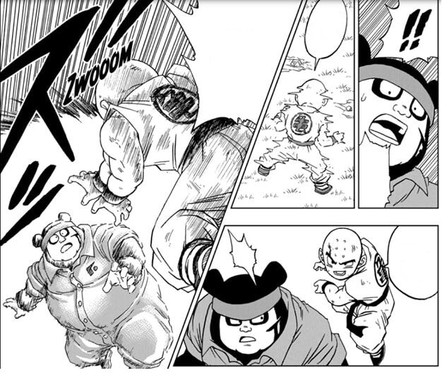 No final do capítulo ainda tivemos outro grande momento de Kuririn, quando mesmo encurralado por uma fusão tripla realizada pelas capangas de Moro, ele conseguiu conseguiu focar o seu Ki o suficiente para permitir que Goku utilizasse o teletransporte e finalmente chegasse no combate