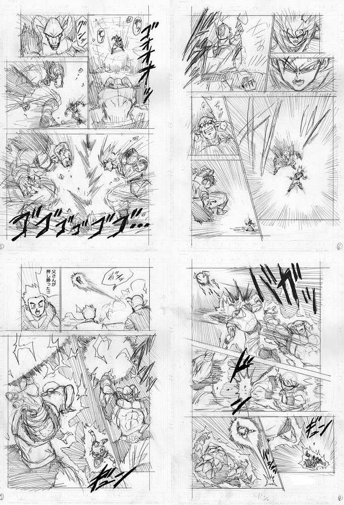 Mesmo as imagens se tratando ainda de esboços da versão final, podemos observar que Goku e Moro começam uma espécie de disputa de ki, com cada um tornando a sua energia cada vez mais intensa, ao ponto de atingir os demais Guerreiros Z.