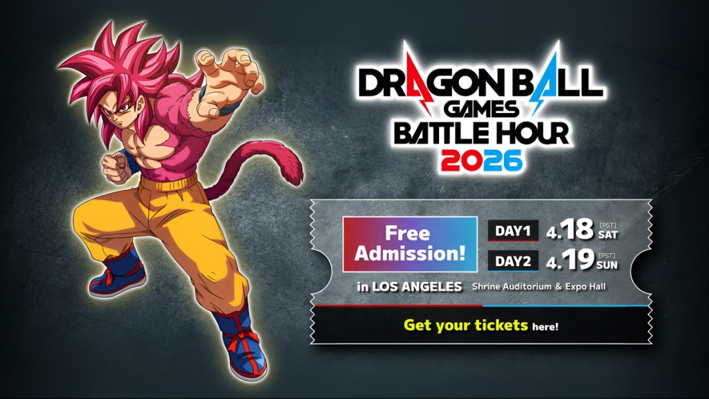 O Dragon Ball Games Battle Hour 2026 será realizado nos dias 18 e 19 de abril, no Shrine Auditorium and Expo Hall, em Los Angeles. Criado em 2021, o evento se consolidou como a maior celebração global da franquia, reunindo conteúdos dos mangás, animes, jogos, filmes e colecionáveis.