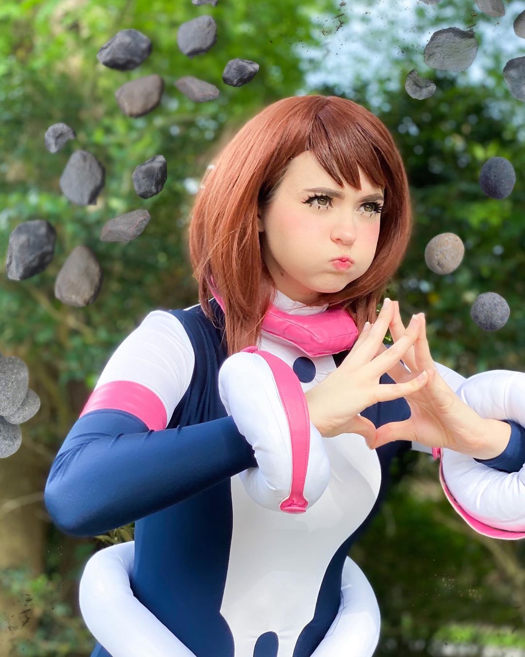 Para obter o efeito da sua Quirk a cosplayer ainda utilizou um pouco de edição adicionando algumas pedras flutuantes ao seu redor.