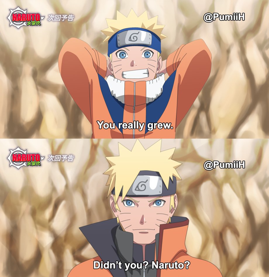 Como você pode conferir nas imagens abaixo, além de ter um cabelo um pouco maior, Naruto utiliza um casaco laranja com detalhes em preto, que lembra bastante o seu visual durante o arco do Ataque de Pain, especificamente quando ele volta do treinamento no Monte Myoboku para defender Konoha.