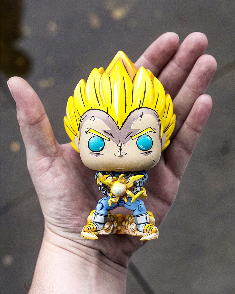 Um desses fãs é um artista conhecido como Abbernaffy Customs, que recentemente compartilhou um Funko simplesmente incrível que traz Vegeta lançando o seu famoso Final Flash.