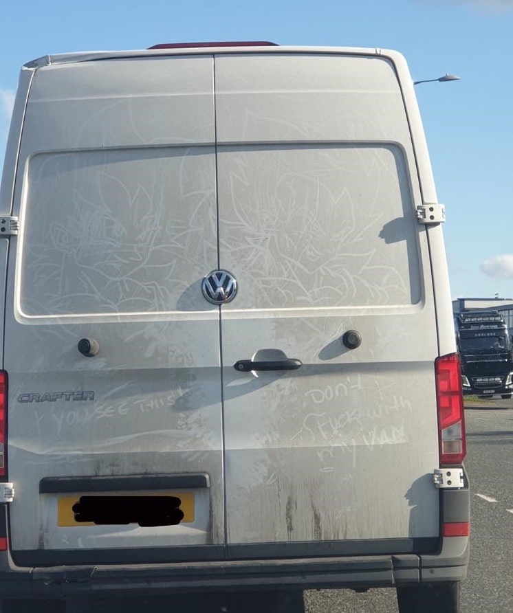 Como você pode conferir na imagem abaixo, bem centro da parte de trás da van é possível ver um desenho até que bastante detalhado dos nossos dois queridos Saiyajins.