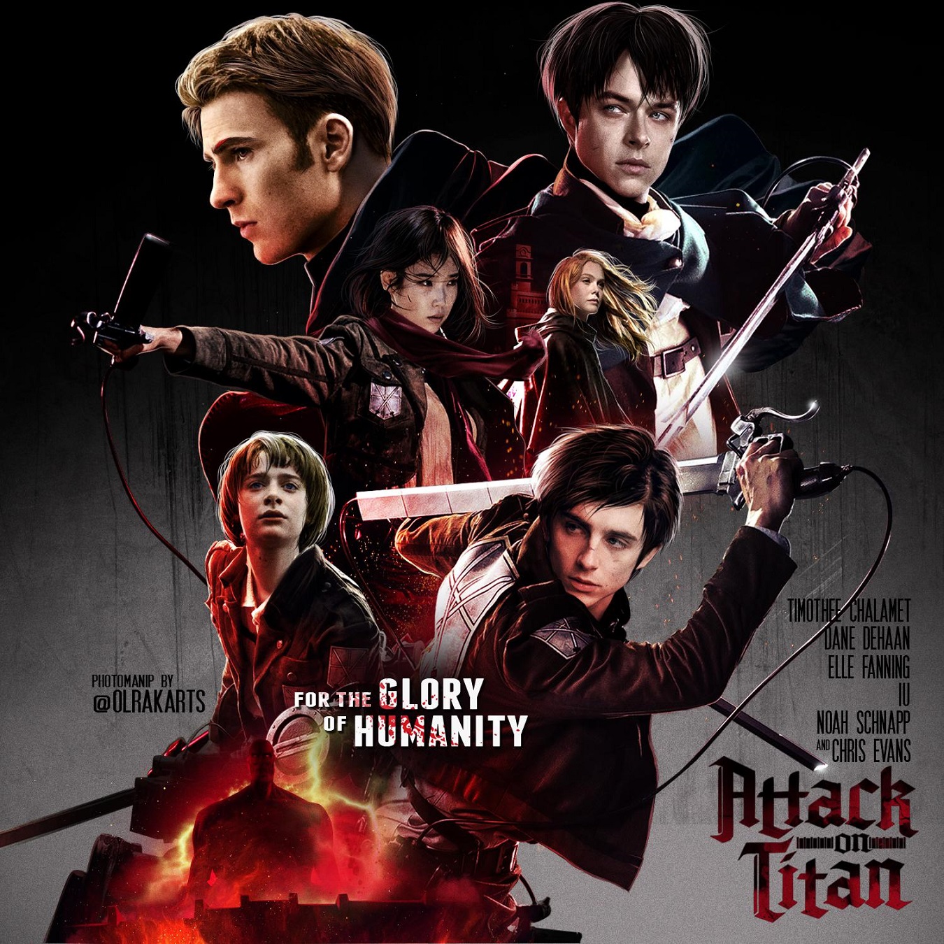 No restante do elenco ainda teríamos Dane DeHaan (O Espetacular Homem-Aranha 2) como Levi Ackerman, Chris Evans (Vingadores) como o comandante Erwin e Elle Fanning (Malévola) como Krista/Historia.