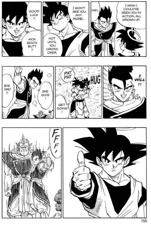 A cena realmente parece uma passagem de bastão para uma nova geração de lutadores, no entanto, um pouco mais para frente nesse mesmo arco temos outra reviravolta na história, com Gohan não conseguindo derrotar o Super Buu e Goku retornando para se manter como o grande protagonista.
