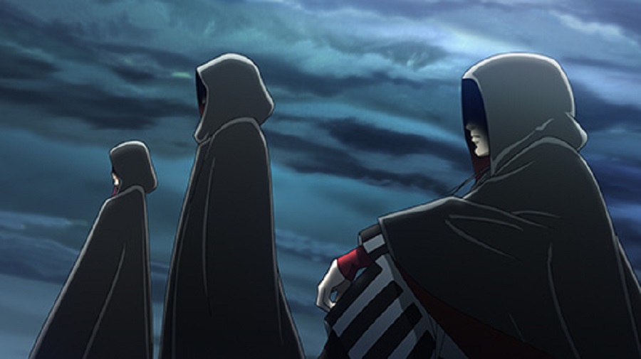 Agora, graças às imagens reveladas da nova abertura que estreará no episódio 151, temos um pequeno vislumbre de como ocorrerá à apresentação da Kara no anime. Como você pode conferir na imagem abaixo, vemos três membros da organização encapuzados, com um deles sendo justamente o seu líder, Jigen.