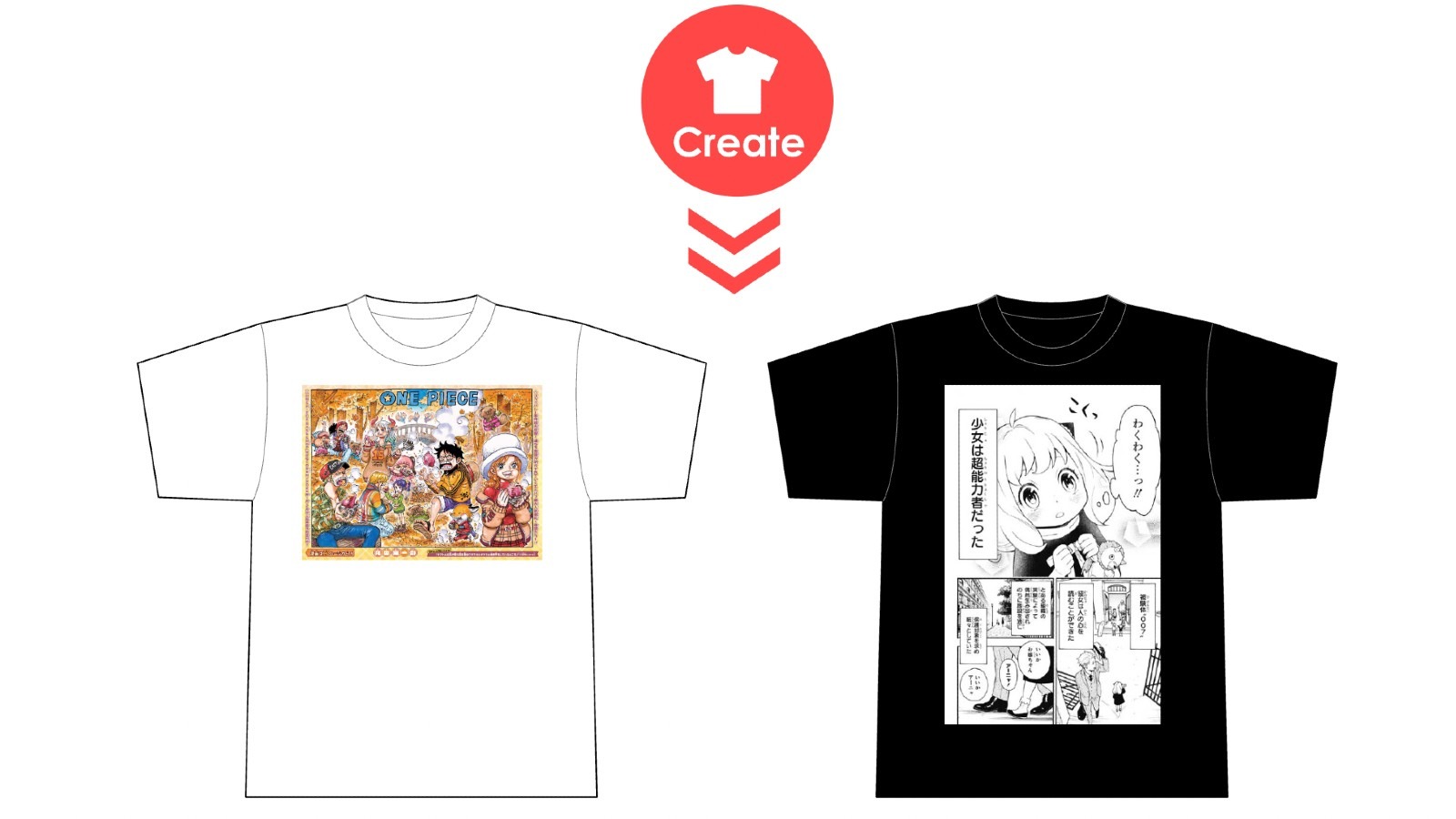 A Manga Plus, serviço oficial de leitura de mangás da Shueisha, agora possibilita que usuários escolham páginas específicas de títulos disponíveis e criem camisetas personalizadas. As estampas utilizam a versão japonesa original das páginas, incluindo o material publicado inicialmente em revistas como a Weekly Shōnen Jump, o que pode resultar em pequenas diferenças em relação às versões traduzidas.