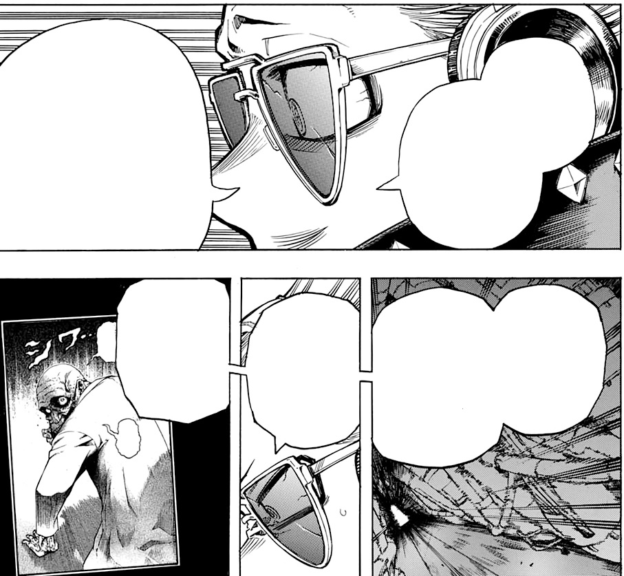 Além disso, antes do capítulo adentrar no sonho de Shigaraki, o doutor reconhece que Present Mic é amigo de Kurogiri, revelando ainda que na época o seu verdadeiro interesse era no Erasure de Shota Aizawa.