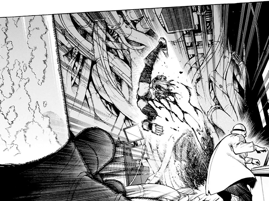 Como consequência dessa sua corrida, Mirko acaba sendo perfurada por duas estacas de um dos Nomus, com o capítulo terminando com ela pronta para destruir o tanque em que está Shigaraki, enquanto Endeavor finalmente chega para ajudá-la.
