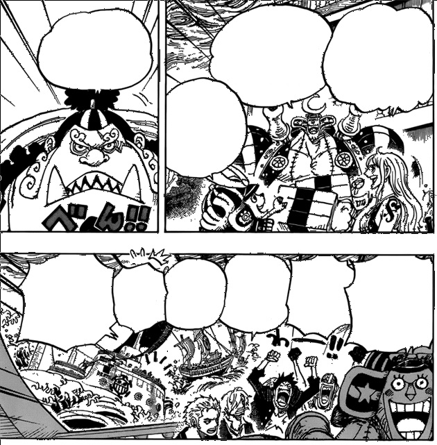 Reunindo as canecas e a bebida, os Chapéus de Palha já estavam prontos para comemorar, mas Luffy resolve interromper o brinde afirmando que é melhor celebrarem após a derrotar Kaido, Orochi e Big Mom, assim eles poderão fazer uma grande festa com todos reunidos.