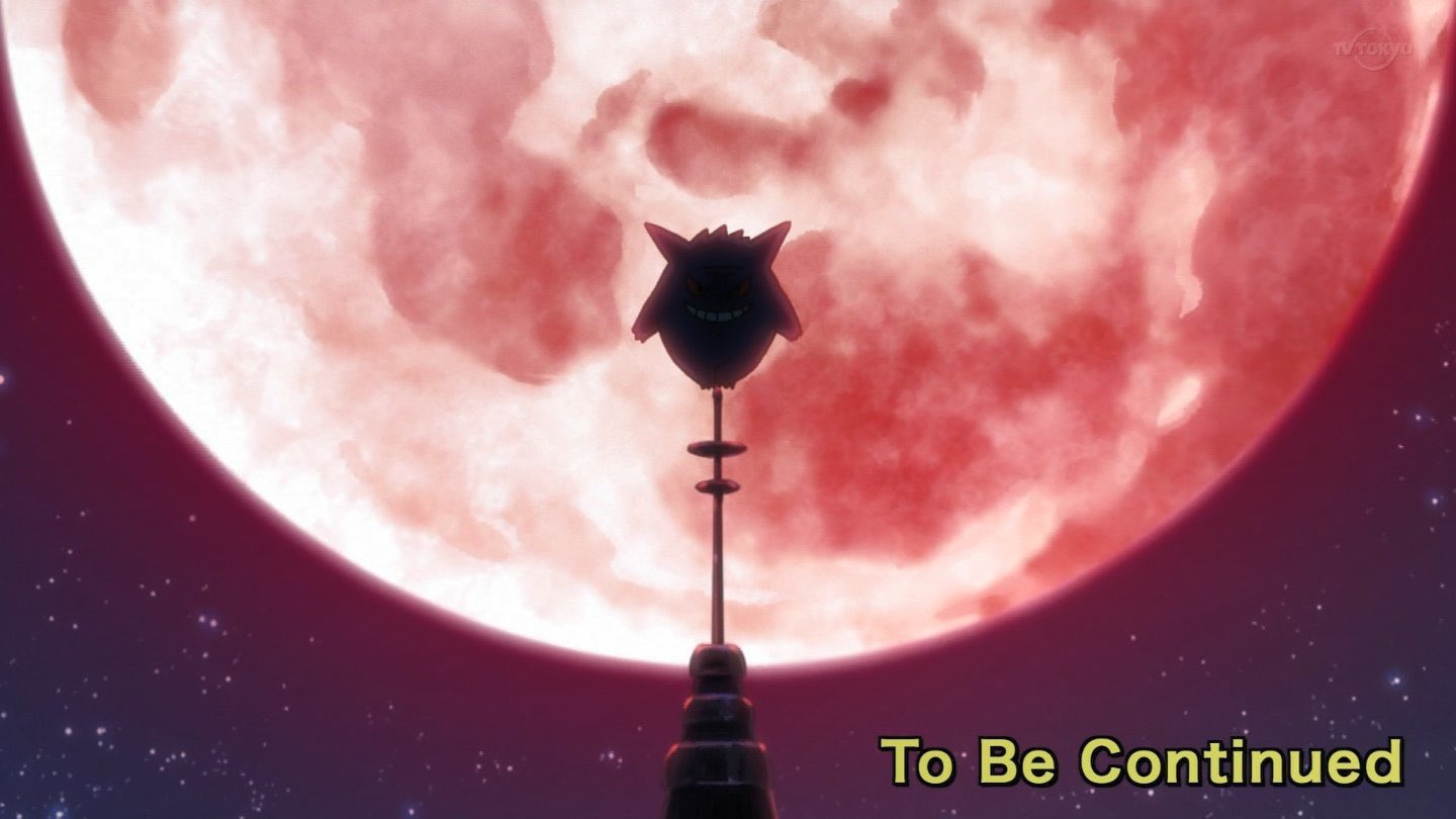 No entanto, após nenhum deles ter conseguido capturar o monstrinho, a última cena do episódio mostrou o Gengar no topo do laboratório do professor Sakuragi com uma grande lua vermelha ao fundo e uma pose que rapidamente fez os fãs de Naruto lembrarem de Itachi Uchiha.
