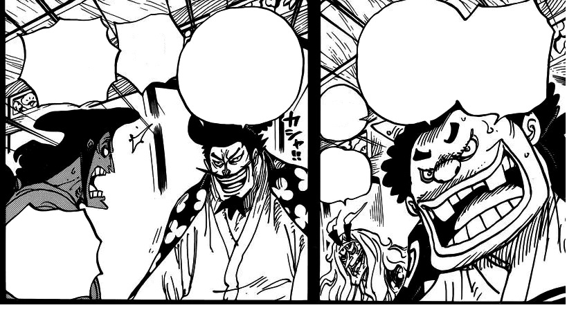 O capítulo já começa com o momento de Oden atacando Orochi, mas percebendo que o seu ataque simplesmente não causou nenhum efeito por causa de Seminaru Kurozumi, o antigo usuário da Bari Bari no Mi, uma Akuma no Mi com o poder de criar uma barreira praticamente impenetrável, que vimos pela primeira vez na obra sendo utilizada por Bartolomeo.