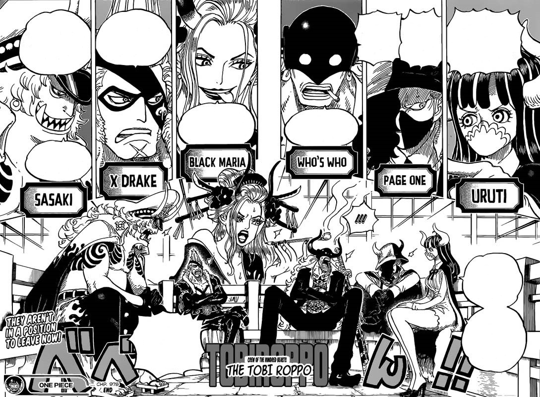 Assim, no capítulo 978, conhecemos oficialmente todos os integrantes do Sexteto Voador, um misterioso grupo que se encontra atrás apenas dos All-Stars na hierarquia do bando. Embora anteriormente já tivéssemos sido apresentados a X Drake e Page One, o capítulo mostrou os quatro membros restantes do grupo e já desenvolveu um pouco de como é a relação entre eles.