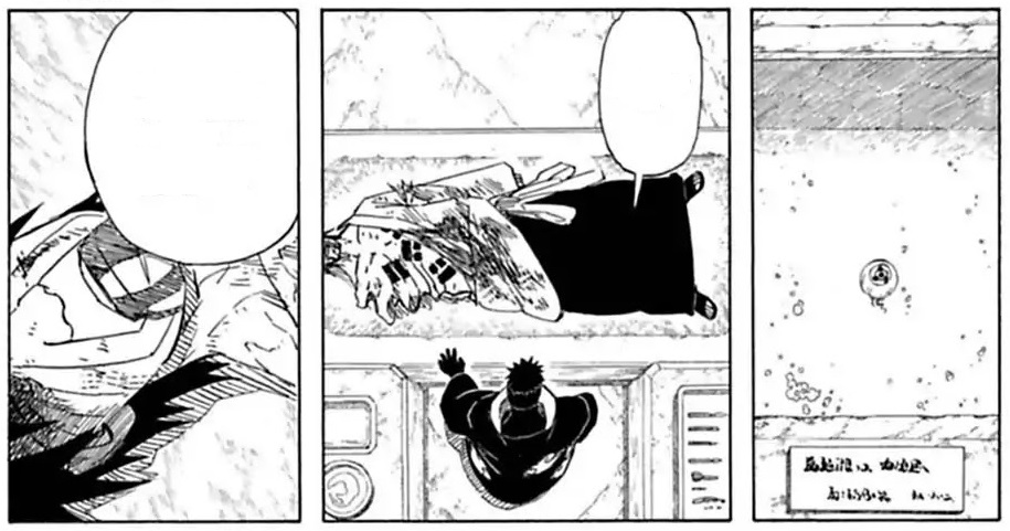 Caso você não esteja lembrado, a cena em que ocorre essa revelação acontece logo após a morte de Danzo no final do arco da Reunião dos Cinco Kage, em que Obito aparece no seu laboratório com o corpo de Danzo, mas percebe que pouco antes de morrer ele ainda foi capaz de destruir o Mangekyo Sharingan de Shisui.