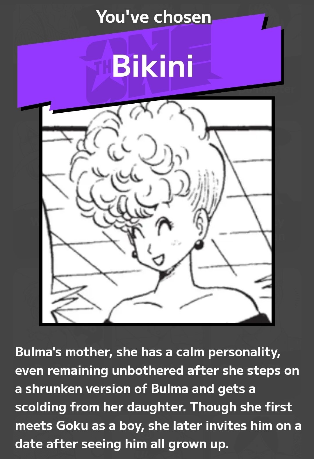 Durante a comemoração no site dos 41 anos, um Quiz foi feito e quando a mãe de Bulma é mostrada, o nome “Bikini” aparece no lugar de Panchy, causando um pouco de confusão: