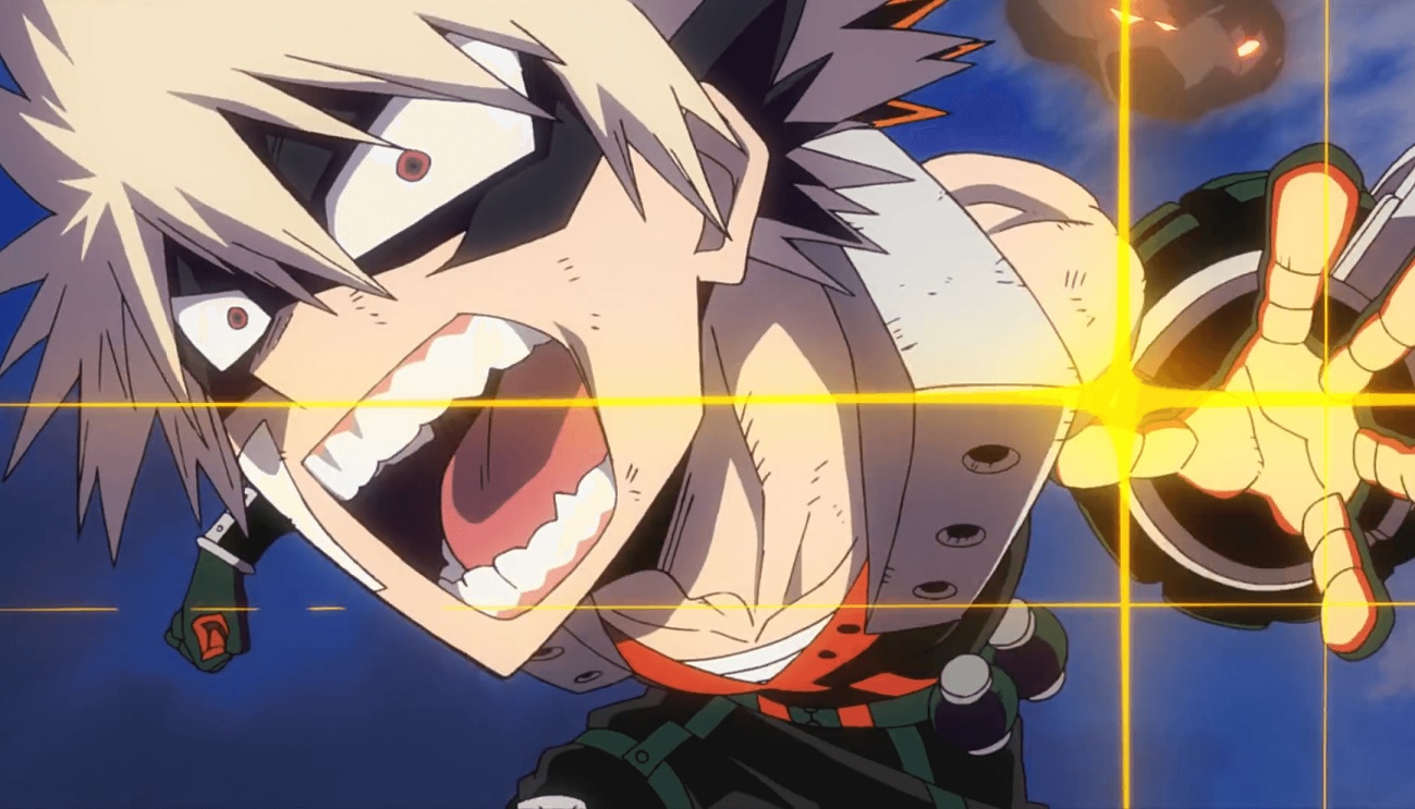 Caso você não esteja familiarizado, a Quirk de Bakugo faz com que ele sue pela palma da sua mão uma substância similar com a nitroglicerina, o permitindo que criar poderosas explosões que ficam ainda mais fortes quanto mais ele sua.