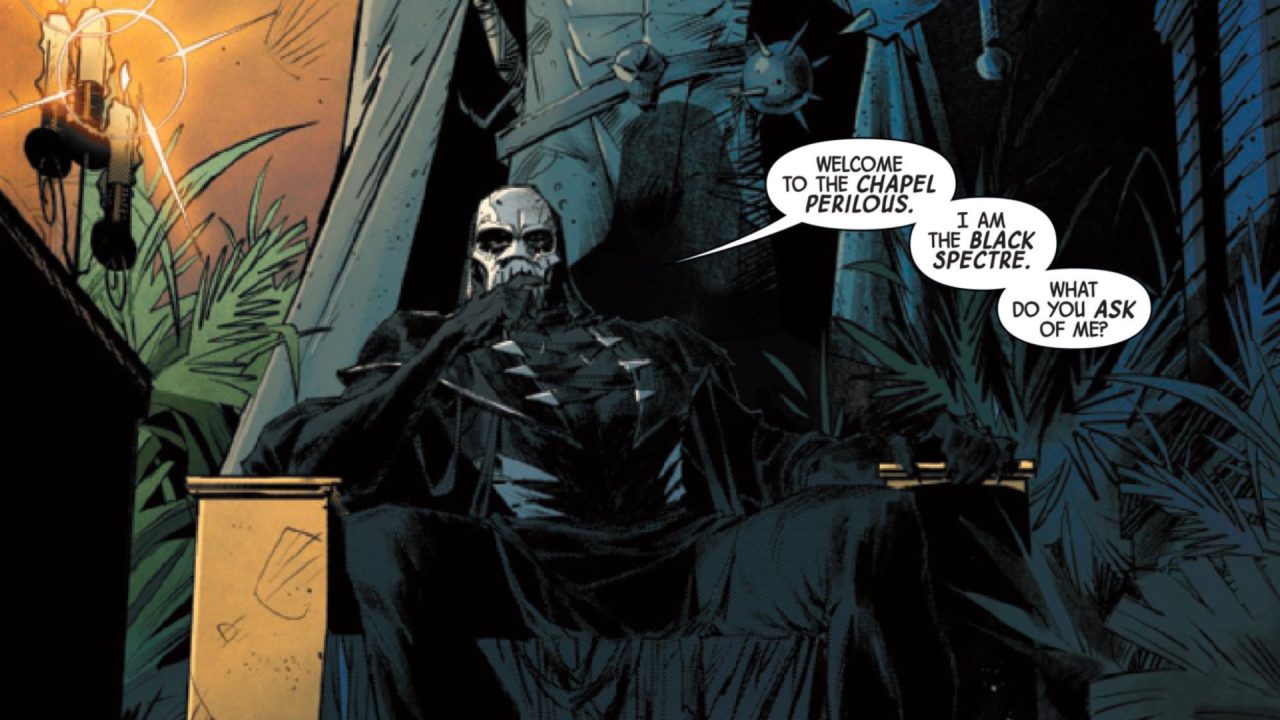 O Black Spectre é um dos inimigos mais persistentes do Cavaleiro da Lua, mesmo sem possuir poderes sobrenaturais. Criado por Carson Knowles, um veterano de guerra que perdeu tudo ao retornar para casa, o vilão encontrou no crime e na política corrompida o caminho para sua vingança. Em Moon Knight #25, sua identidade foi exposta publicamente durante uma batalha, mas a marca de sua rivalidade com Marc Spector ficou registrada como uma das mais pessoais da série.