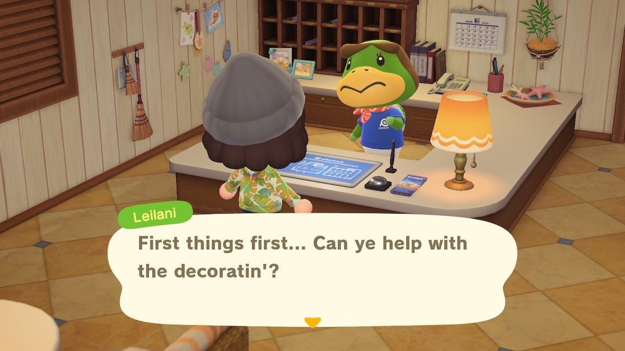 Fale com Leilani na recepção para iniciar as missões de decoração, que permitem decorar dois quartos por dia.