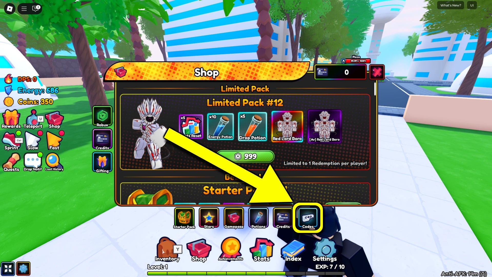 Dentro da loja, selecione o botão “Codes” no canto direito inferior.