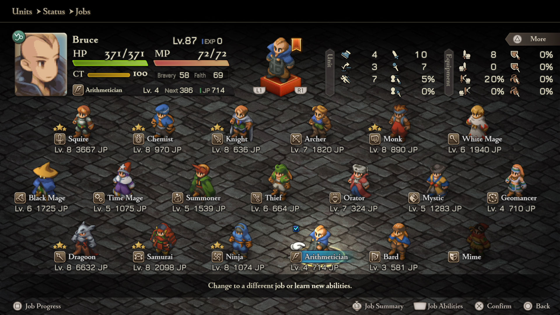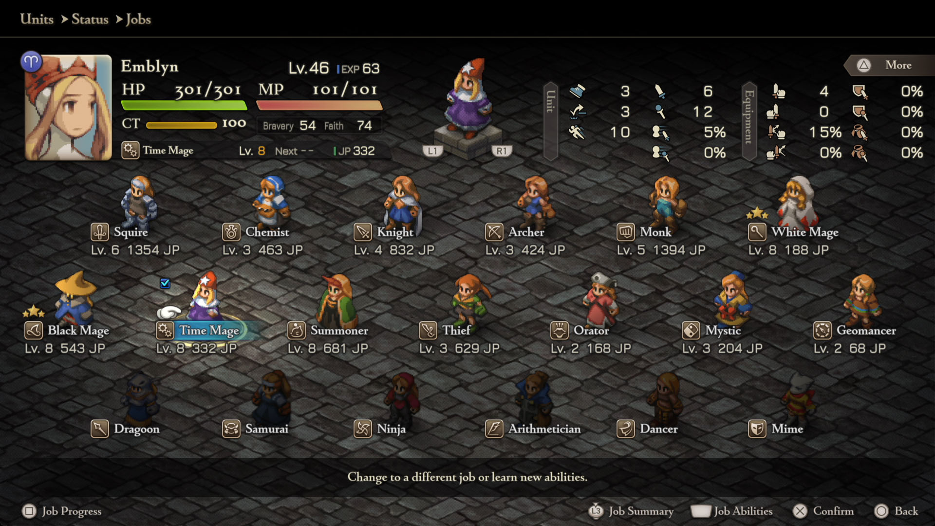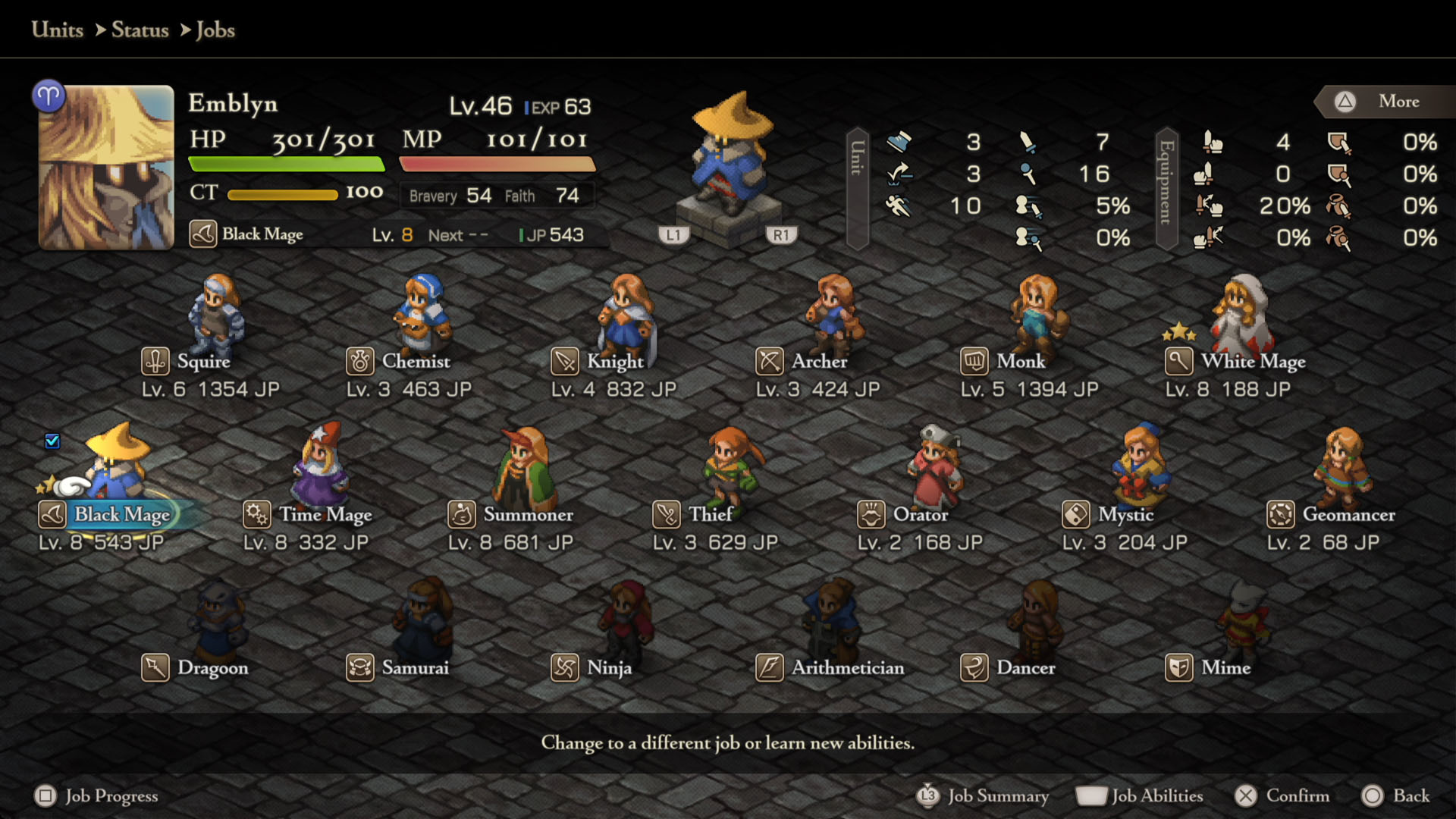 - Arithmetician – White Mage Lvl 5, Black Mage Lvl 5, Mystic Lvl 4, Time Mage Lvl 4