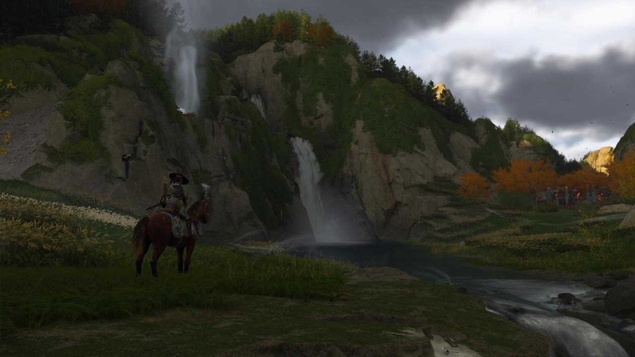 Próxima à área onde é concluída a missão secundária “Trilhas Antigas”, onde Atsu escolhe seu cavalo. A fonte fica levemente escondida entre as árvores.