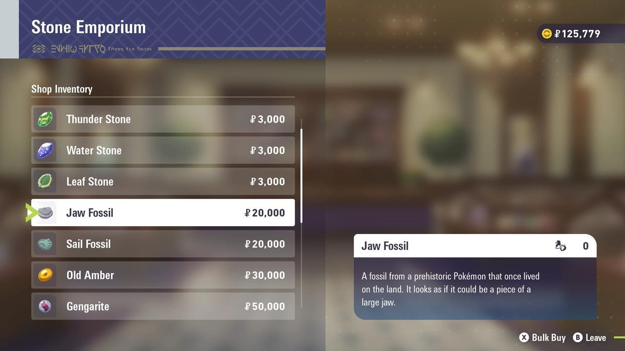Fóssil de Mandíbula (Jaw Fossil) – Custa 20.000 ouro e revive Tyrunt (Pedra/Dragão).