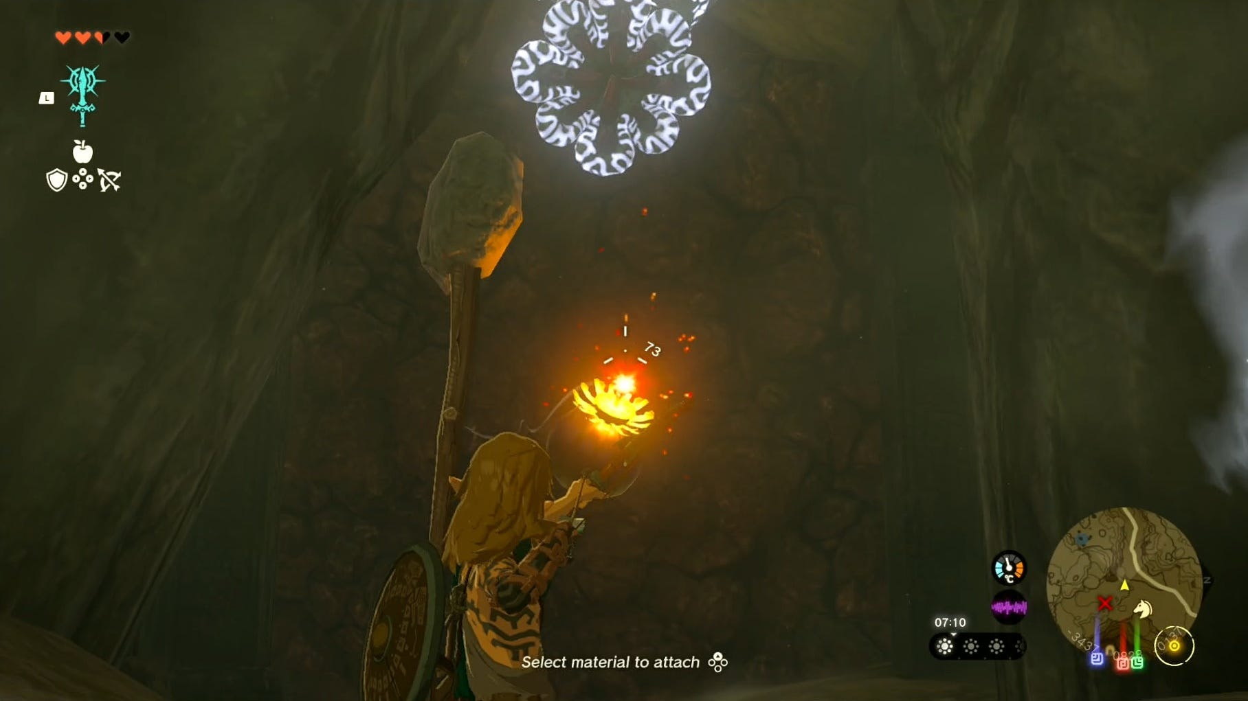 Para chegar ao Santuário Iun-orok a partir da entrada da Caverna Tanagar Canyon West, pule e use flechas de bomba ou uma arma de martelo fundido para esmagar as rochas rachadas. Achamos mais fácil ir direto na próxima câmara, já que as rochas rachadas atrás do monstro Like eram mais fáceis de bombardear.