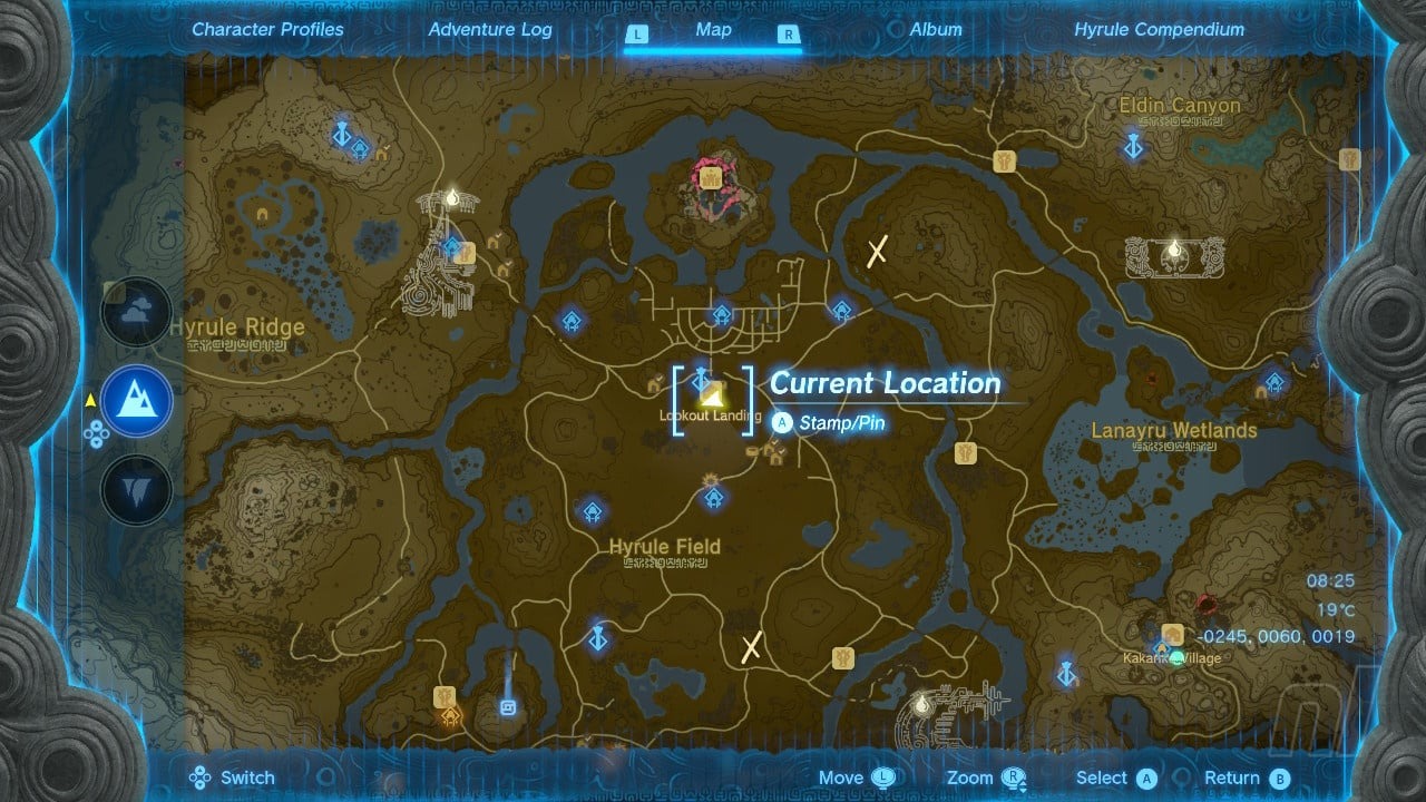 Você encontrará esse estábulo de Zelda: TOTK a oeste, no lado esquerdo de Hyrule Ridge. Lindor’s Brow Skyview Tower é o mais próximo para obter uma visão panorâmica e você só precisa voar para sudoeste um pouco a partir daqui para alcançá-lo.