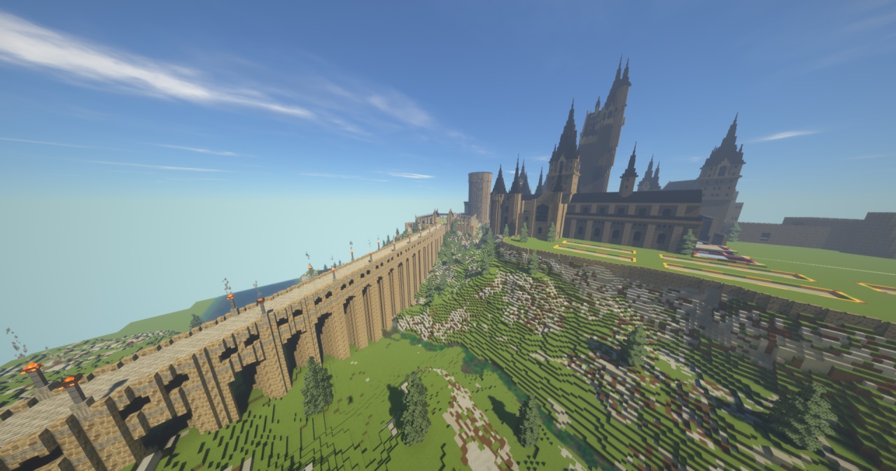 Para os jogadores que gostam de construir em grande escala, a ponte de fantasia é o projeto ideal. Inspirada em designs medievais, essa estrutura mistura diferentes tipos de blocos, variações de altura e abundância de luzes, criando um visual impressionante.