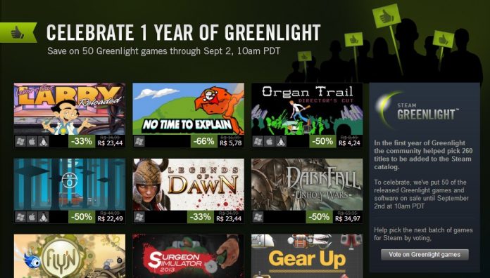 O Steam liberou recentemente 100 jogos no Steam Greenlight para comemorar o aniversário do programa e ontem iniciou uma promoção que vai até o final do fim de semana com os títulos já aprovados. Os descontos vão até 66% e é uma boa oportunidade de comprar jogos como Game Dev Tycoon, Surgeon Simulator e Postal 2 Complete dentre outros.