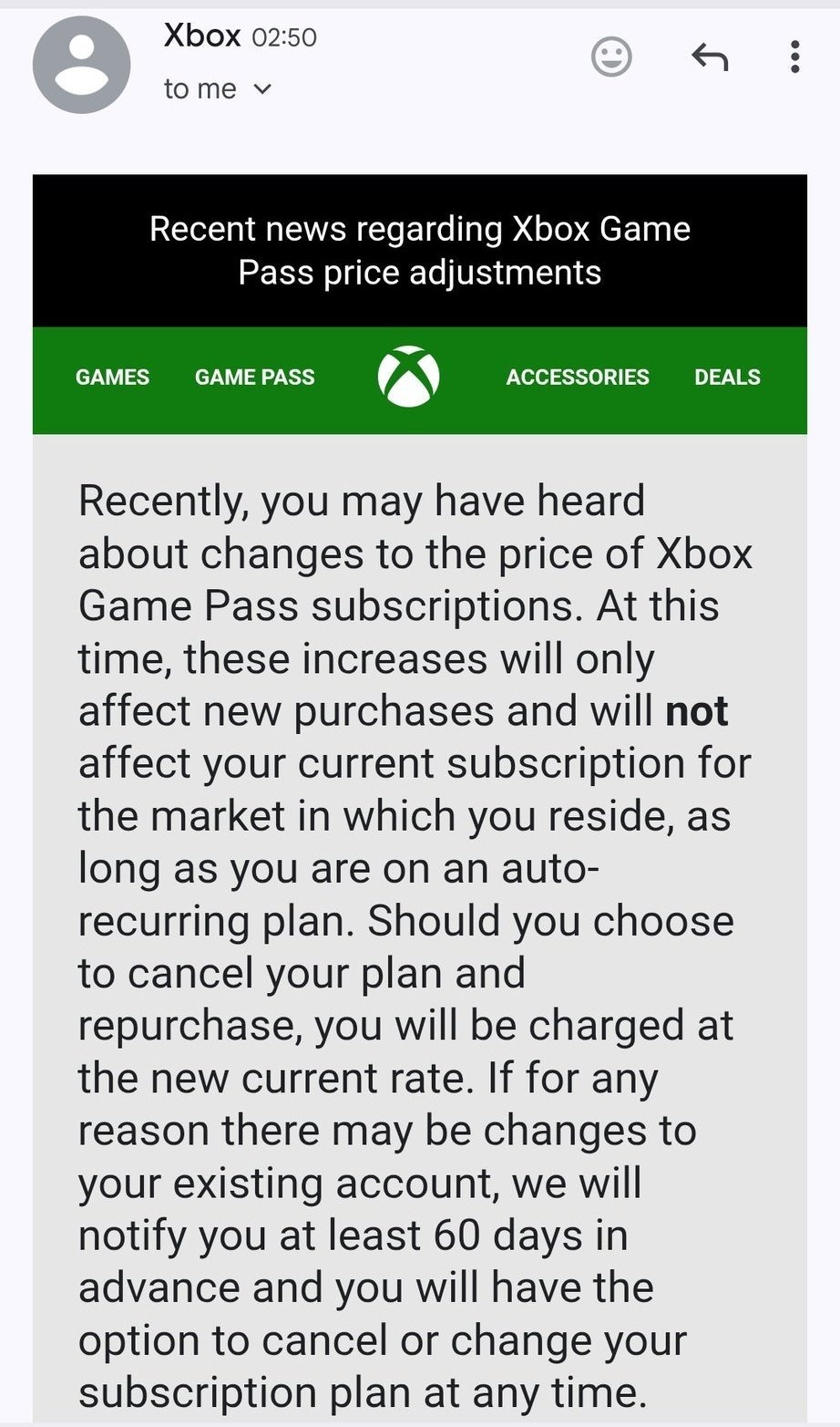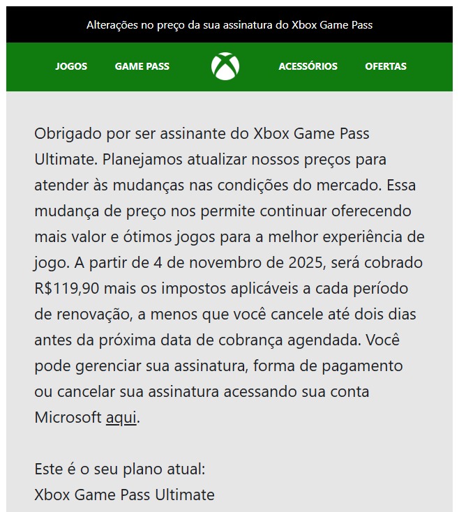 Jogadores de países como França, Espanha e Polônia relataram ter recebido um e-mail da Microsoft informando que não sofrerão o reajuste, desde que estejam com o plano ativado por renovação automática. O comunicado destaca que apenas novas assinaturas — ou reativações após cancelamento — serão afetadas pelos novos valores.