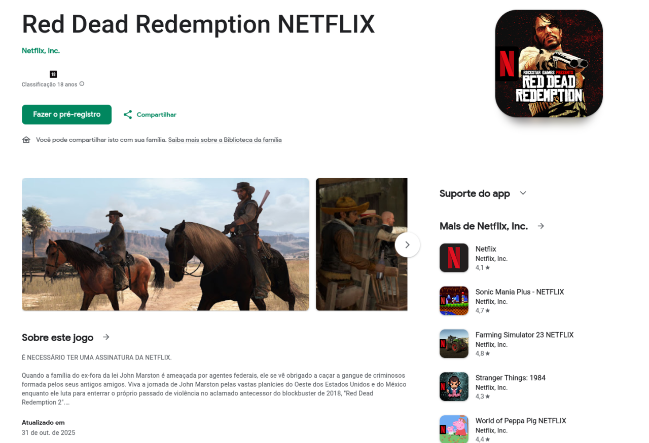 De surpresa, foi confirmado que Red Dead Redemption 1 será lançado para dispositivos móveis e até mesmo a página dele já está online na Google Play.