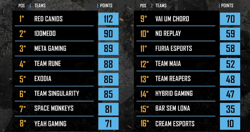 Os 12 melhores times – 8 de cada grupo – avançaram para a 4ª e última rodada, se enfrentando em 12 quedas, nos mapas Miramar, Sanhok e Erangel. O sistema utilizado para classificação foi de pontos corridos, com a pontuação sendo definida pela classificação final da equipe em cada jogo e o número de eliminações de adversários.