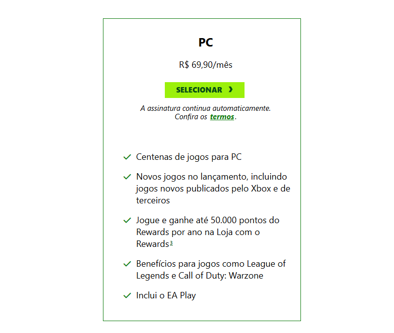 - Antigo Game Pass de PC (R$ 35/mês) → permanece como PC, mas com novos benefícios e valor atualizado (R$ 70/mês)