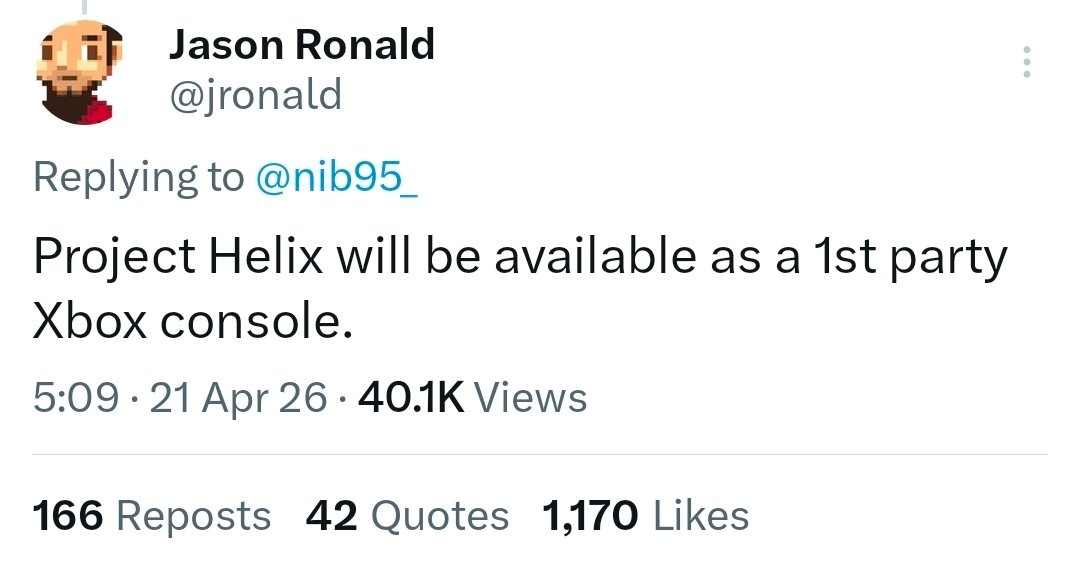 O debate ganhou um novo capítulo quando Jason Ronald, Vice-Presidente de Gaming da Xbox, respondeu publicamente ao vazamento, afirmando que “o Project Helix estará disponível como um console first-party Xbox”. A declaração veio em resposta a especulações de que o chip do Helix poderia ser comercializado também por fabricantes terceiros, como ASUS e MSI.