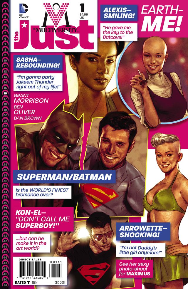 Apesar de parecer um tanto quanto bizarro, a revista que trata dos acontecimentos da Earth-16, conhecida também como Earth-Me, é escrita por ninguém menos que Grant Morrison. A saga MULTIVERSITY trás personagens que são filhos do heróis com os quais estamos acostumados como Chris Kent, Damien Wayne, Alexis Luthor, Offspring e Megamorpho, e tem uma pegada mais despojada, fazendo parece em alguns momentos, que a história é na verdade um capítulo de Gossip Girl.