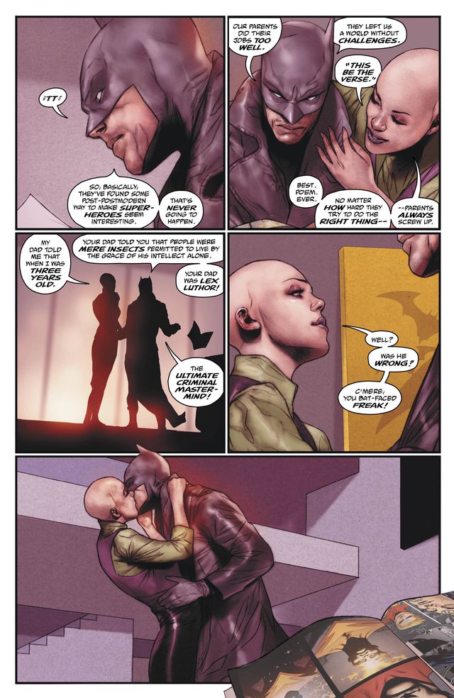 - O Batman é na verdade Damian Wayne e Luthor é Alexis Luthor, filha de Lex.