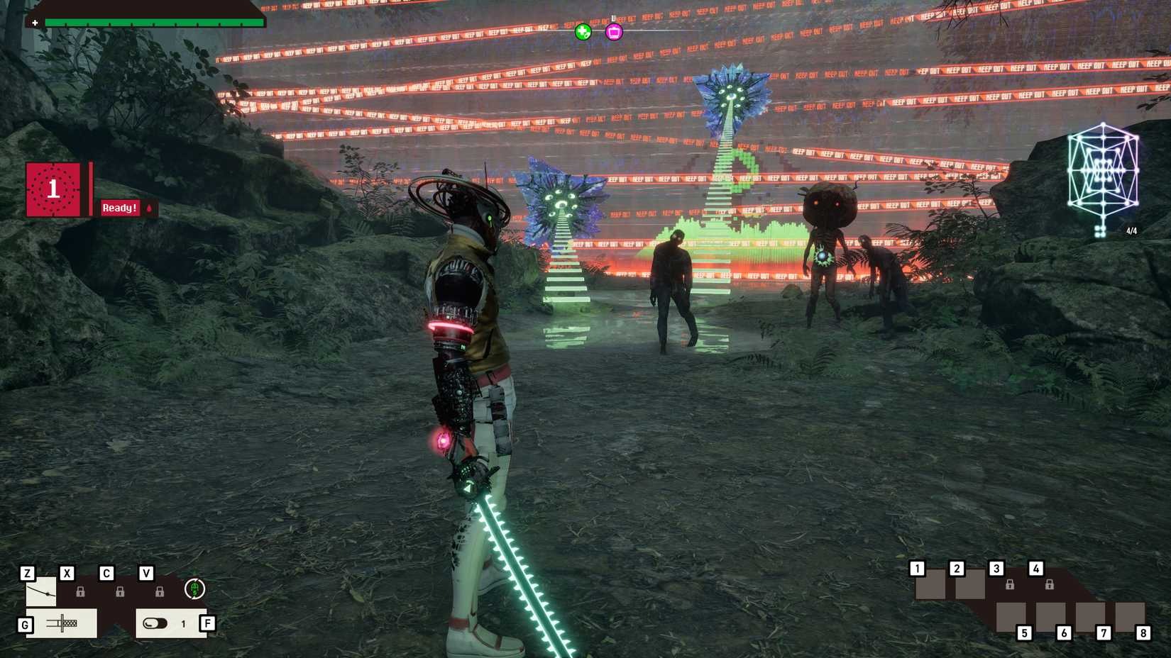 A ideia do jogo é o tipo de viagem na maionese que a gente espera do Suda, e apesar do jogo começar com um visual todo diferentão, ele acaba sendo muito mais simples do que ele aparenta à princípio. Você controla o personagem naquele esquema estilo soulslike, ou seja, ataque médio e ataque forte, esquiva, “fogueira” (a farmácia do espaço tempo) onde você recupera seus itens de cura e os inimigos reaparecem dentro do cenário e assim por diante.