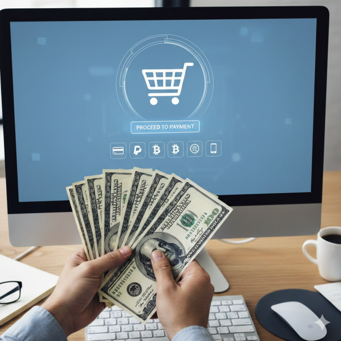 Início do pagamento: o cliente insere seus dados de pagamento no site do comerciante e prossegue para o checkout.