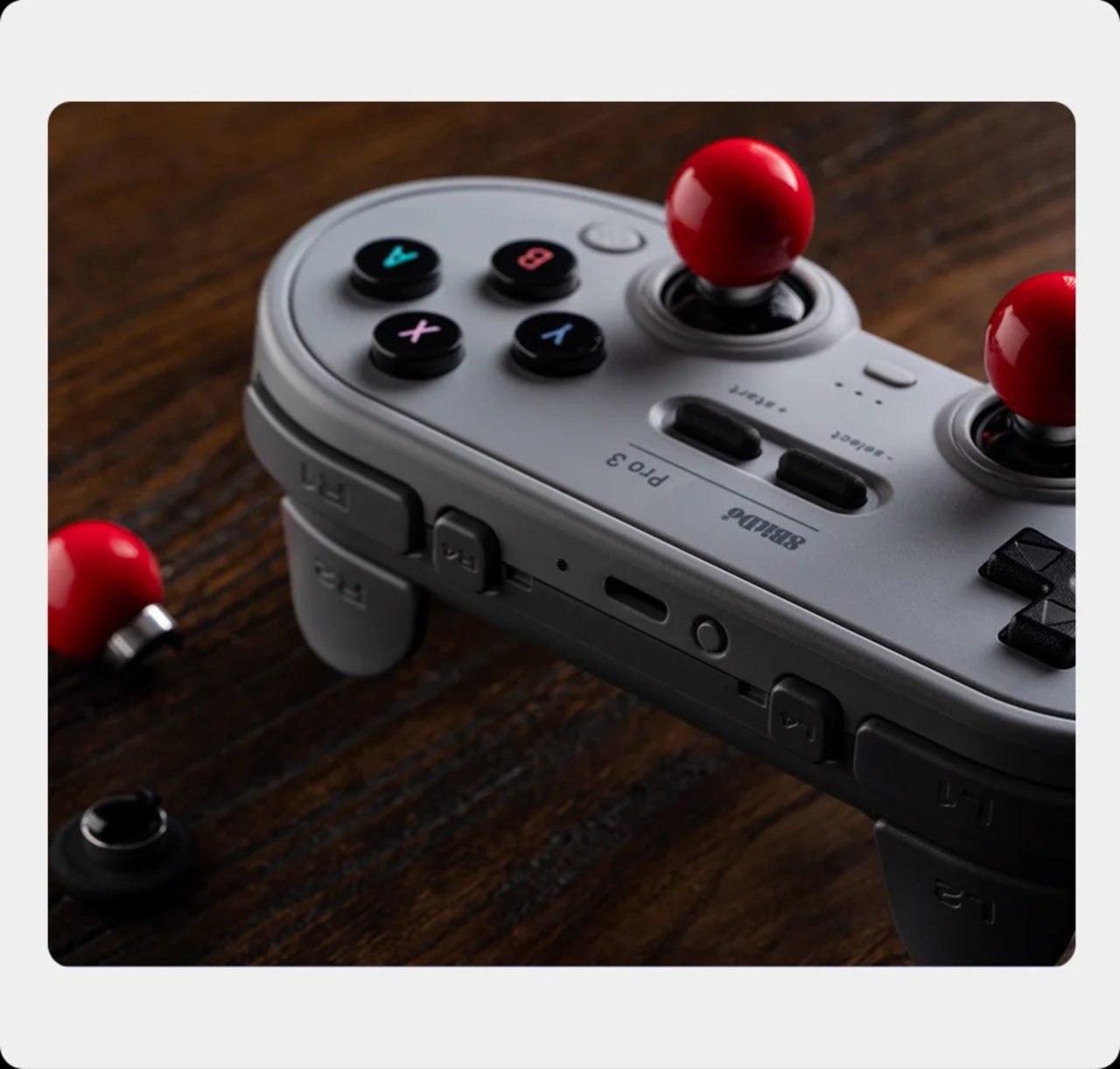 O modelo Pro 3 é uma versão aprimorada do tradicional controle retro da 8BitDo, com conectividade sem fio via Bluetooth e compatibilidade com diversas plataformas como Windows, Android, Steam Deck e Nintendo Switch. Ele é reconhecido pela qualidade na construção, ergonomia confortável e opções de personalização através do software oficial da fabricante.