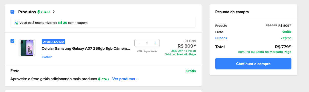 - Galaxy A07 com 256 GB e 8 GB de RAM em oferta por R$ 782,10 no Pix (CUPOM VALEPROMO)